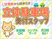 《立体駐車場・受付スタッフ》すぐ働ける!月3回払い・交通費全額等の充実待遇!シニア活躍中 ★伏見駅から徒歩5分!立体駐車場スタッフ★ 経験・資格・学歴一切不問...